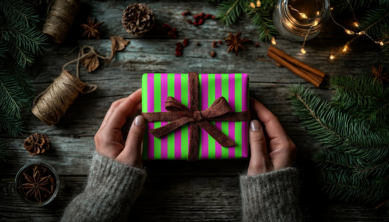 Classic stripes in shocking fuchsia and hot green - holiday tradition with a rebellious twist