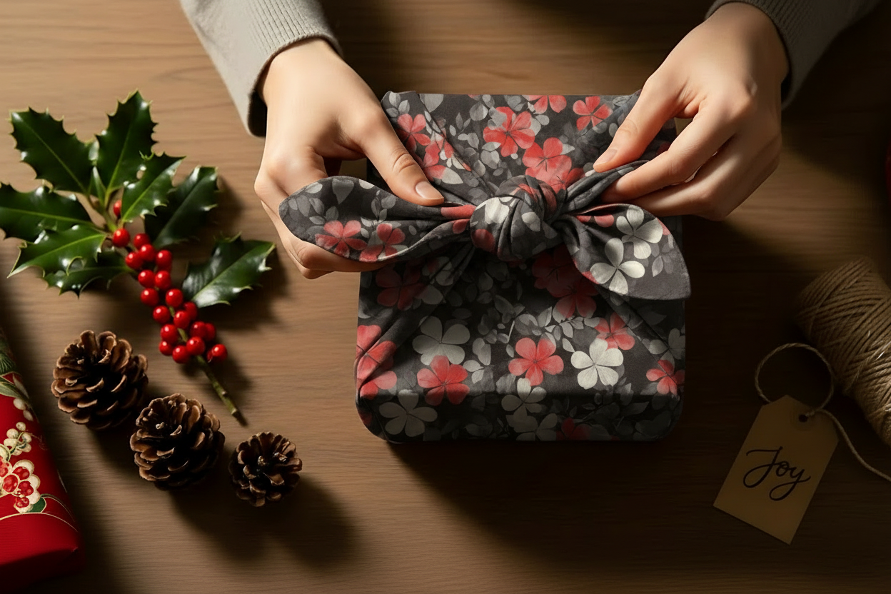 Wrap your world in wearable art with the Inked Garden furoshiki. Inspired by vintage tattoo flash, bold red and white botanicals are inked across a canvas of pure black. Perfect for those who wear their heart on their sleeve and their style on their gifts, this 65cm wrap adds edgy elegance to any occasion. Made from our soft, durable fabric, it’s endlessly versatile and designed to last. A permanent mark of unforgettable style.