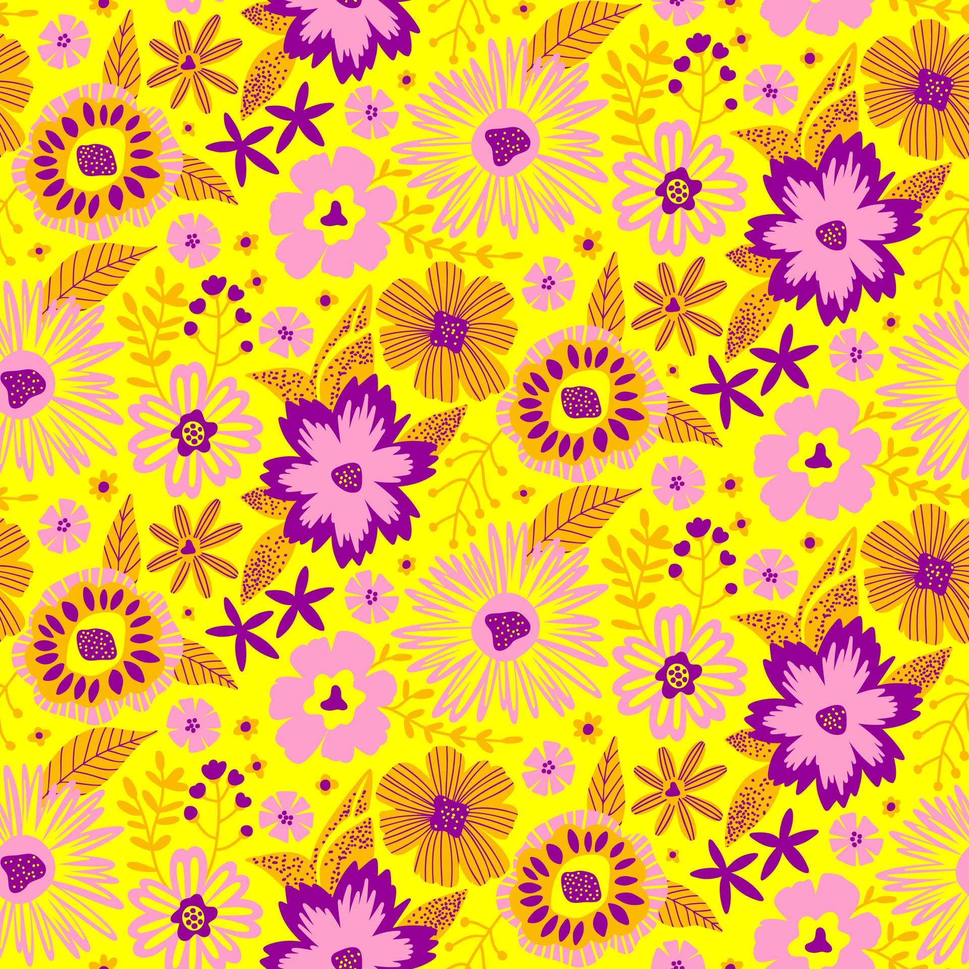 An overgrown paradise gone delightfully rogue - pinks, purples and yellows blooming in unison, just slightly unhinged.