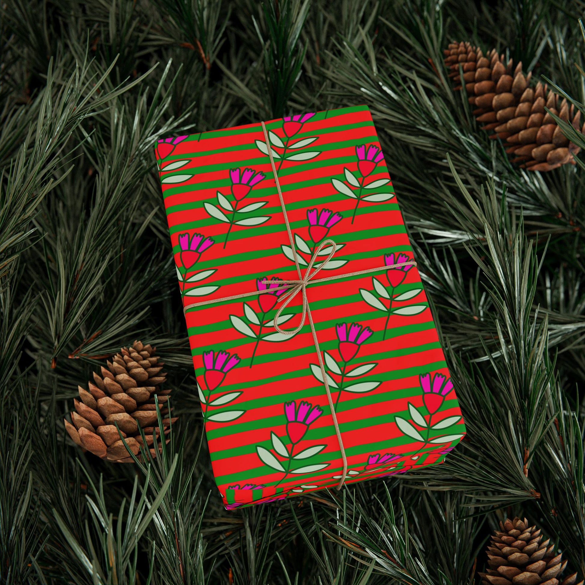 Toxic Bloom fuses bright red and green horizontal stripes with wild, abstract florals for a wrap that’s part celebration, part rebellion. It’s tradition reimagined in full colour - bold, punchy and totally unbothered by rules. Perfect for gifts that demand attention, not approval.